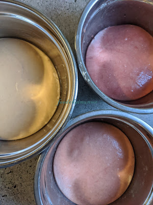 add 2 teaspoon red rice yeast powder to the smallest dough